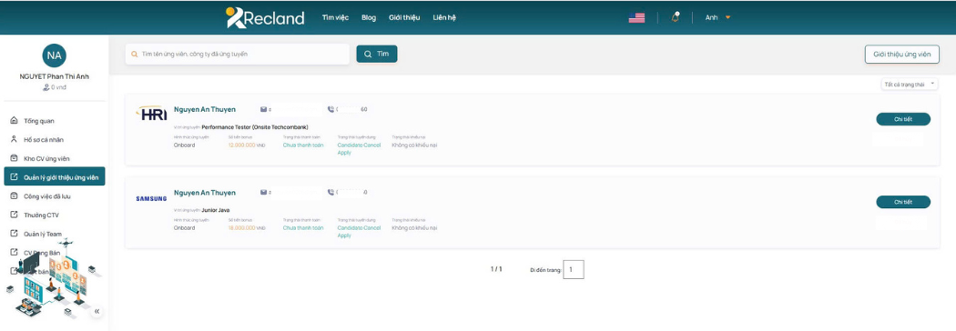 Như vậy, chỉ với vài thao tác đơn giản, bạn đã có thể bắt đầu giới thiệu ứng viên, theo dõi kết quả và nhận thưởng trực tiếp trên Recland. Không cần phải có kinh nghiệm tuyển dụng trước, cũng không phải lo tạo job hay báo cáo — Recland đã chuẩn hóa mọi thứ để ai cũng có thể làm được.
